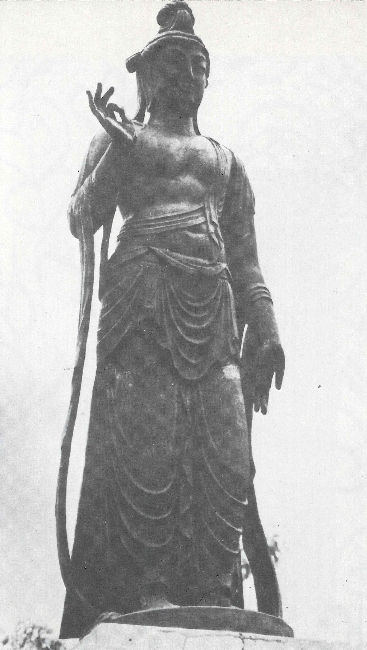 初代の御像は丈7尺(約2.12メートル)の青銅製で三国慶一氏が作成しました。